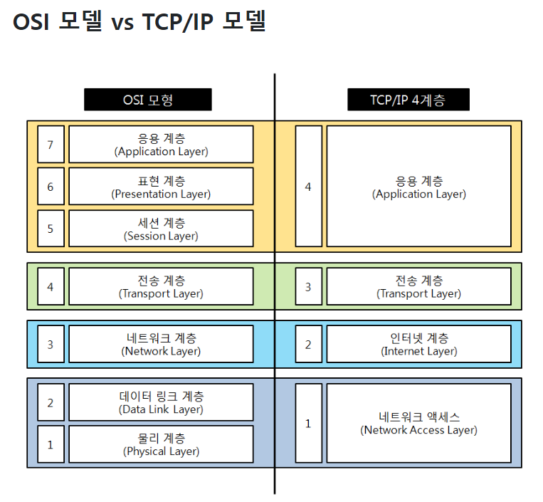 - OSI 모델을 기반으로 실제 사용될 수 있도록 단순화된 모델