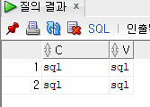 WHERE v = 'sql' --여기까지 세 단락을 실행하면 다 같은 값으로 보이지만