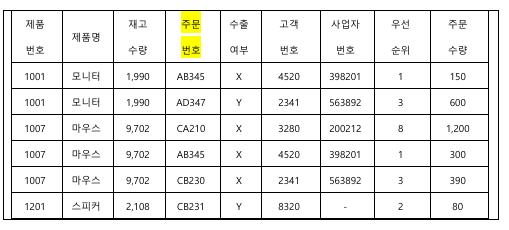 | 기초적정규화 | 1차 정규화 (1NF) |