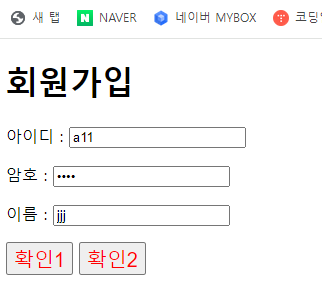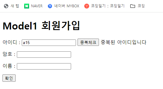 <span id="msg" ></span><p> <!-- 중복된 아이디 체크 확인 로직 -->