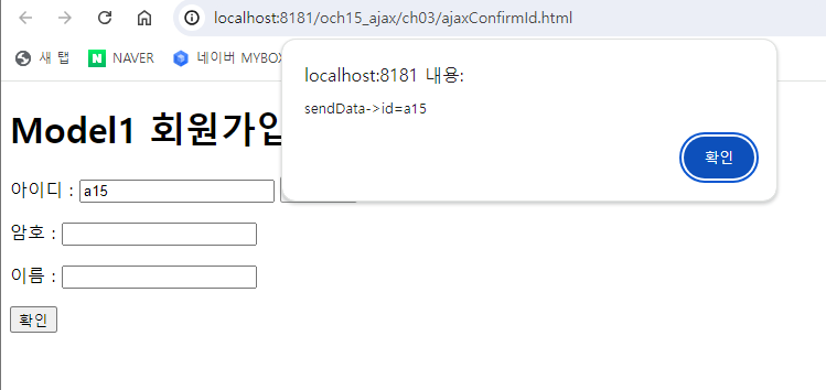 - ajaxConfirmId.html >>oracle의 member1 TBL 활용