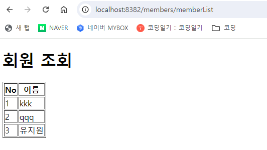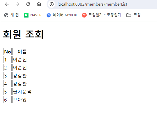 - Member7.class + memberList.html + createMemberForm.html + MemberController.class (현장 HW 3) + MemberService.class (현장 HW 2) + MemberRepository.interface + MemoryMemberRepository.class (현장 HW 1) + index.html
