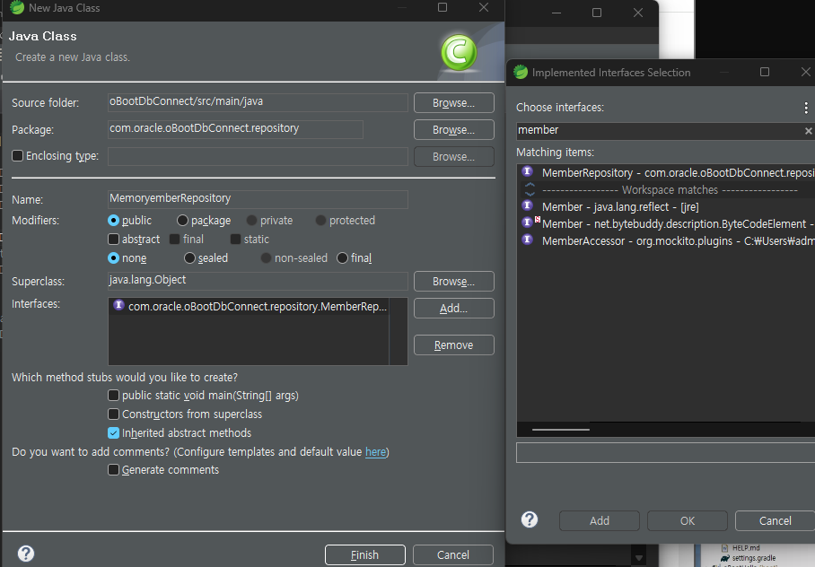 - (어제 강의의 DI방식) MemberController.class + MemberService.class + memoryMemberRepository.interface
