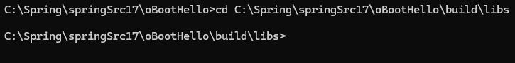 3. 원하는 소스의 build 내의 lib있는 주소 타이핑(C:\Spring\springSrc17\oBootHello\build\libs>)해서 경로 변경