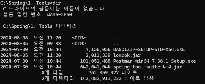 4. >dir 타이핑하여 경로변경