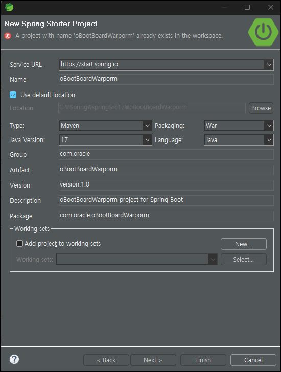 2. (폴더: oBootBoardWarPorn) => gradle이 아닌, Maven 방식으로 만들기