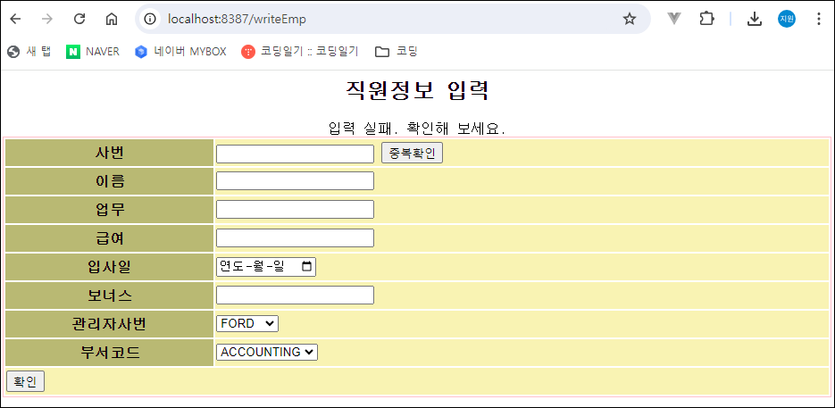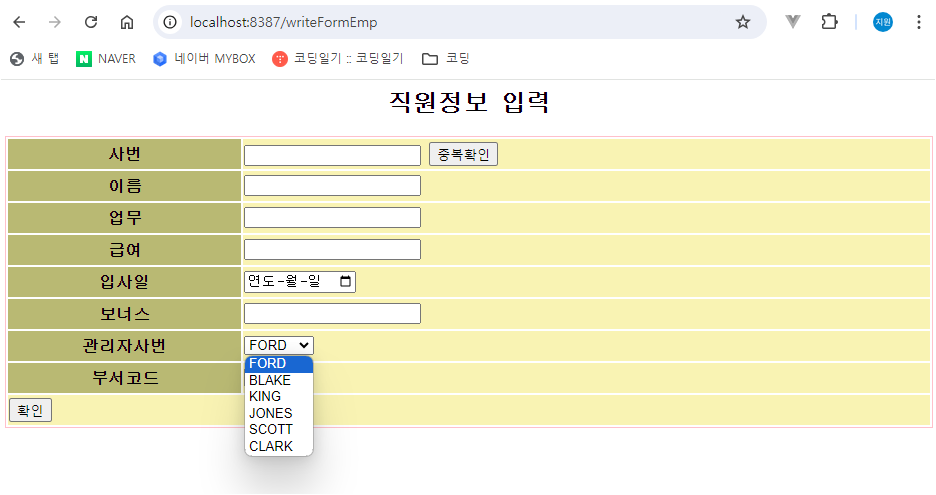 + EmpDao.interface+ EmpDaoImpl.class + Emp.xml - 중복확인 버튼 JSP 방식으로 작동되게 만들기