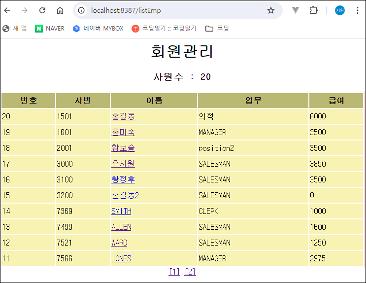 2. 페이징 작업 - 메인 페이지 + List