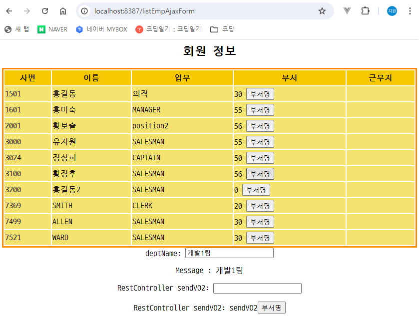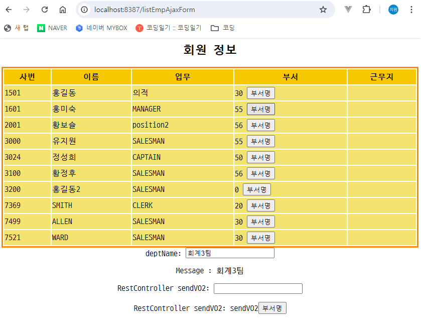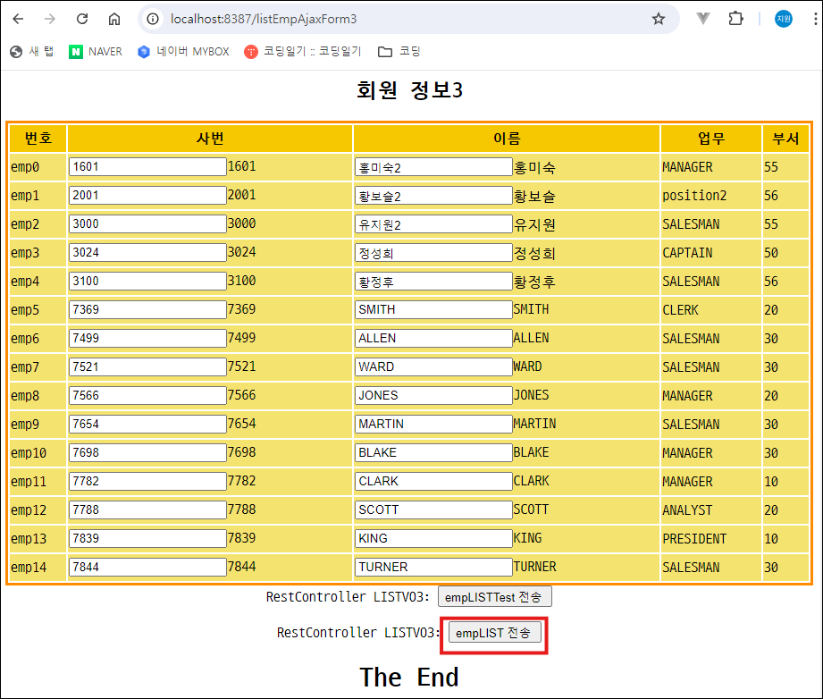 - listEmpAjaxForm3.jsp + EmpController.class => empLIST 전송 버튼