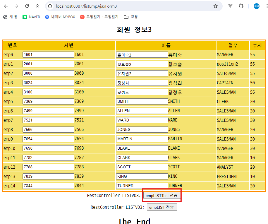 - listEmpAjaxForm3.jsp + EmpController.class => empLISTTest 전송 버튼
