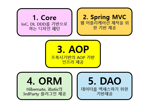 - 관점(Aspect) 지향 프로그래밍, 즉 관점을 기준으로 다양한 기능을 분리하여 보는 프로그래밍