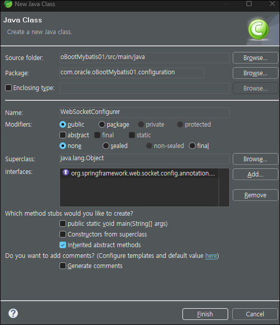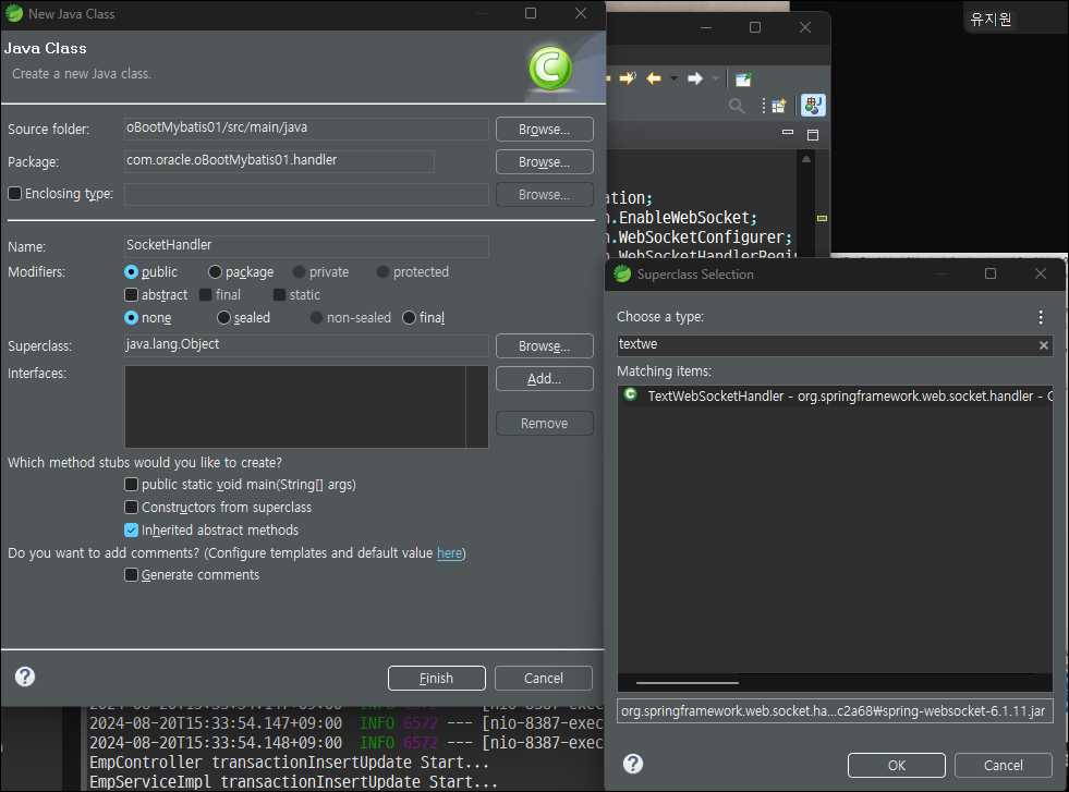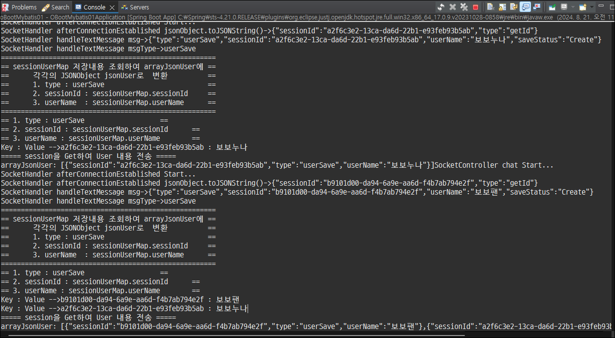 - WebSocketConfigure.class + SocketHandler.class + SocketController.class + chatView.jsp