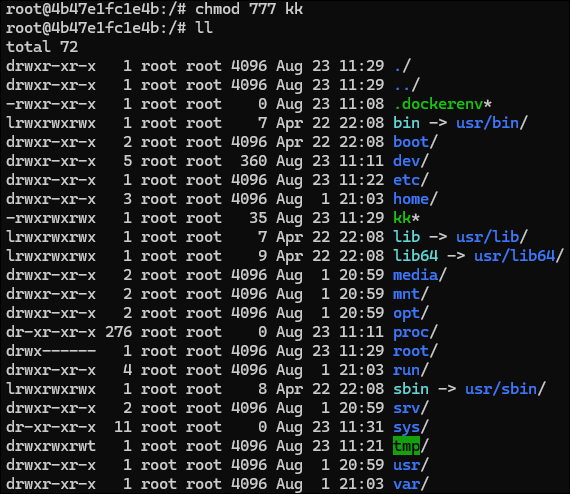 7. chmod rwx자리에 맞는 숫자 입력하여 권한 주고 ll 눌러서 권한 바뀐거 확인