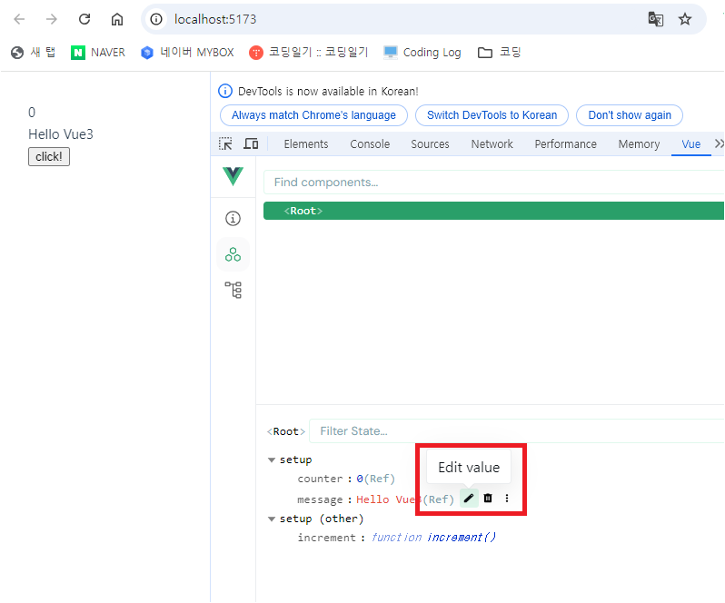 - <script>에 import { reactive } from "vue";을 임포트함