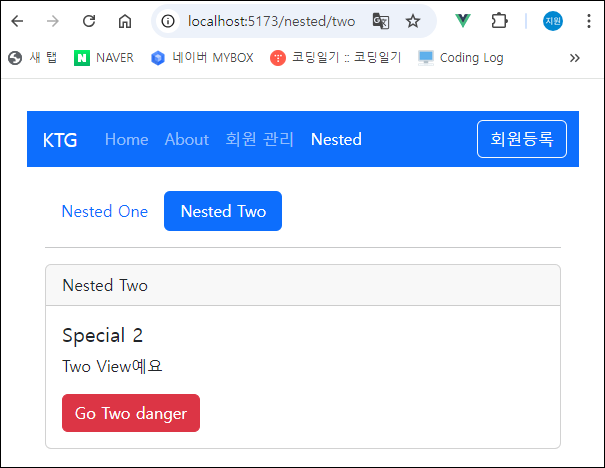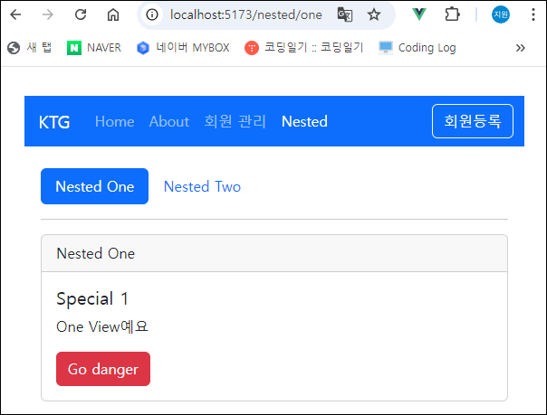 <!-- NestedOneView를 받아서, RouterLink를 타고 NestedView로 전달해서 화면에 나타냄 -->